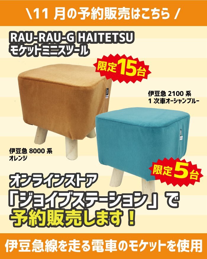 #モケットミニスツール   🎁先行予約特典🎁 購入金額に応じてポイント還元🎉🎉🎉 この機会にぜひ会員登録もお願いします🙇   🛒ご予約はこちらから joybu-st.b-smile.jp/fr/30   #伊豆急行 #HAITETSU #サンワード pic.x.com/6QTifQkeQM
