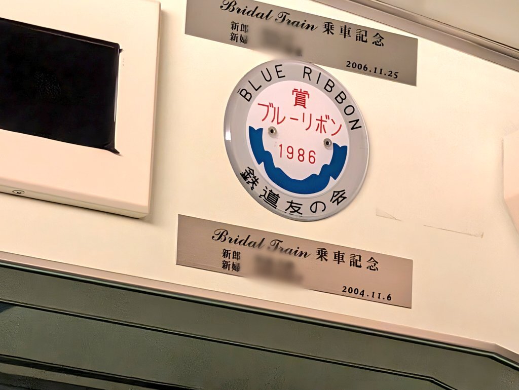 【リゾート21こぼれ話】 1986年ブルーリボン賞か〜とか見ていたら。 新郎!?新婦!? おや?もしかして人前式や神前式ならぬ『リゾート21前式』ですか!?(座席に傾斜があるからアリっちゃアリか) #伊豆急行 pic.x.com/lbvHTRGrjk