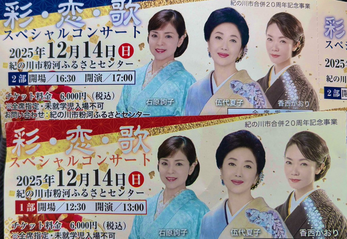 かおりん❤️ 12月制覇する予定が四人衆行けず😭 ぉ美しいぉ三方見れてよかった🥰 3回目もあったらいいな笑 #香西かおり #伍代夏子 #石原詢子 #彩恋歌スペシャルコンサート #和歌山県 pic.x.com/S2khgr7cED