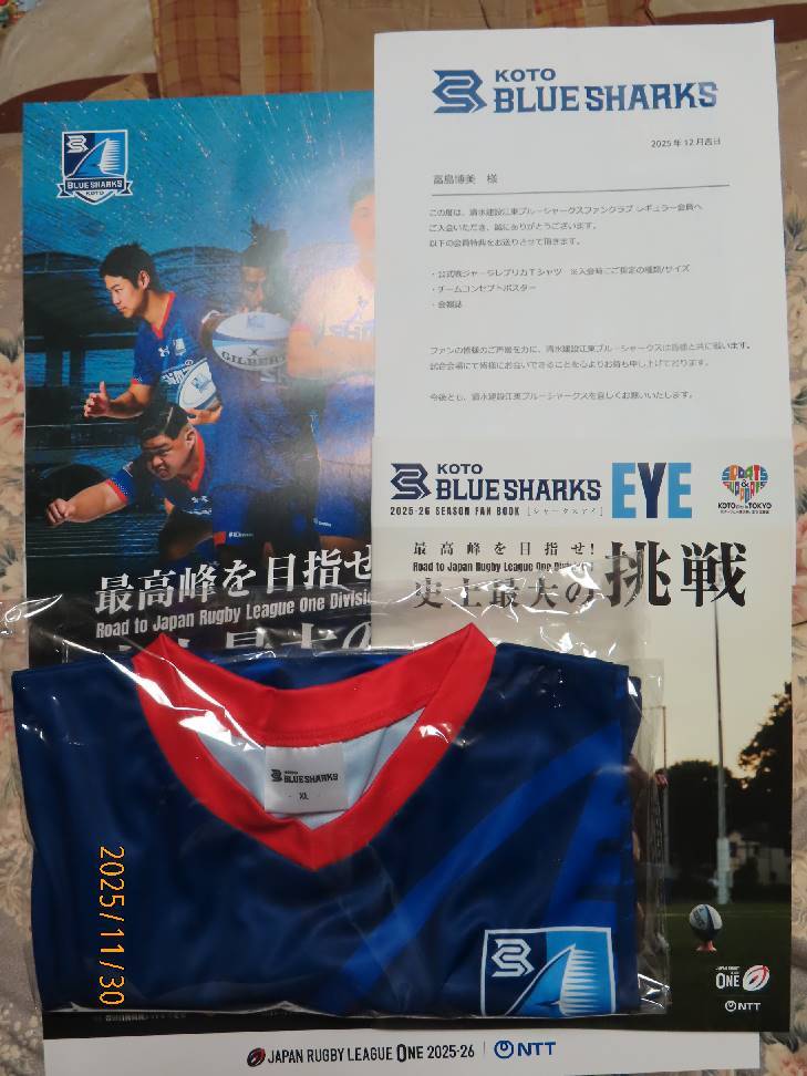 #清水建設ブルーシャークスファンクラブ #入会記念品が届きました ⇒ 11月30日は 秩父宮での 関東大学ラグビー リーグ戦1部の2試合を観戦するため 佐川急便 玄関前置き配依頼済 #公式戦ジャージレプリカTシャツ #チームコンセプトポスター #会報誌 ⇒ 中身の割には大きな段ボール pic.x.com/hNKhEpu5UO