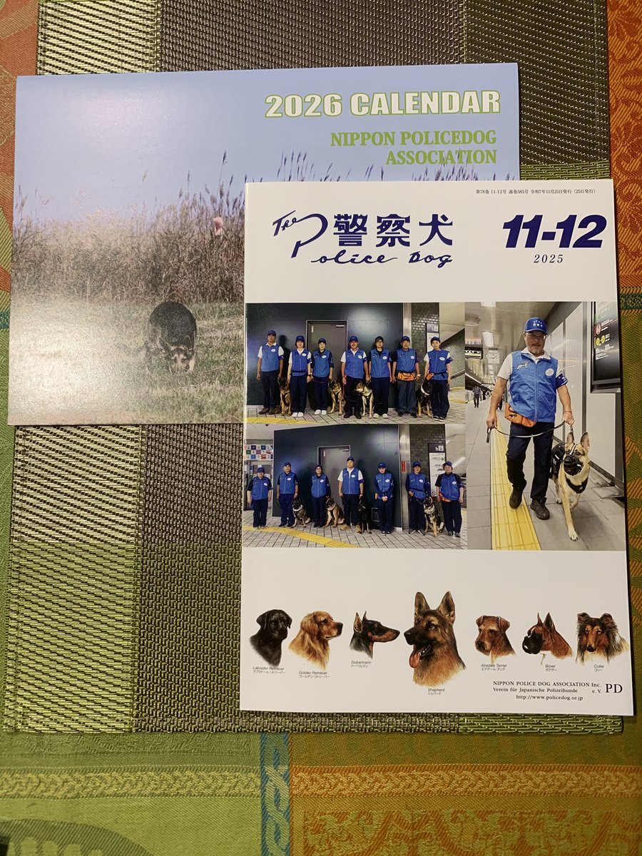 今回の日本警察犬協会会報誌、表紙は訓練士さんの写真そしてカレンダーが同封されていました #日本警察犬協会 #会報誌 #警察犬訓練士 #カレンダー #警察犬協会会報誌 #ポリスドッグ #policedog pic.x.com/B875ssR5sN
