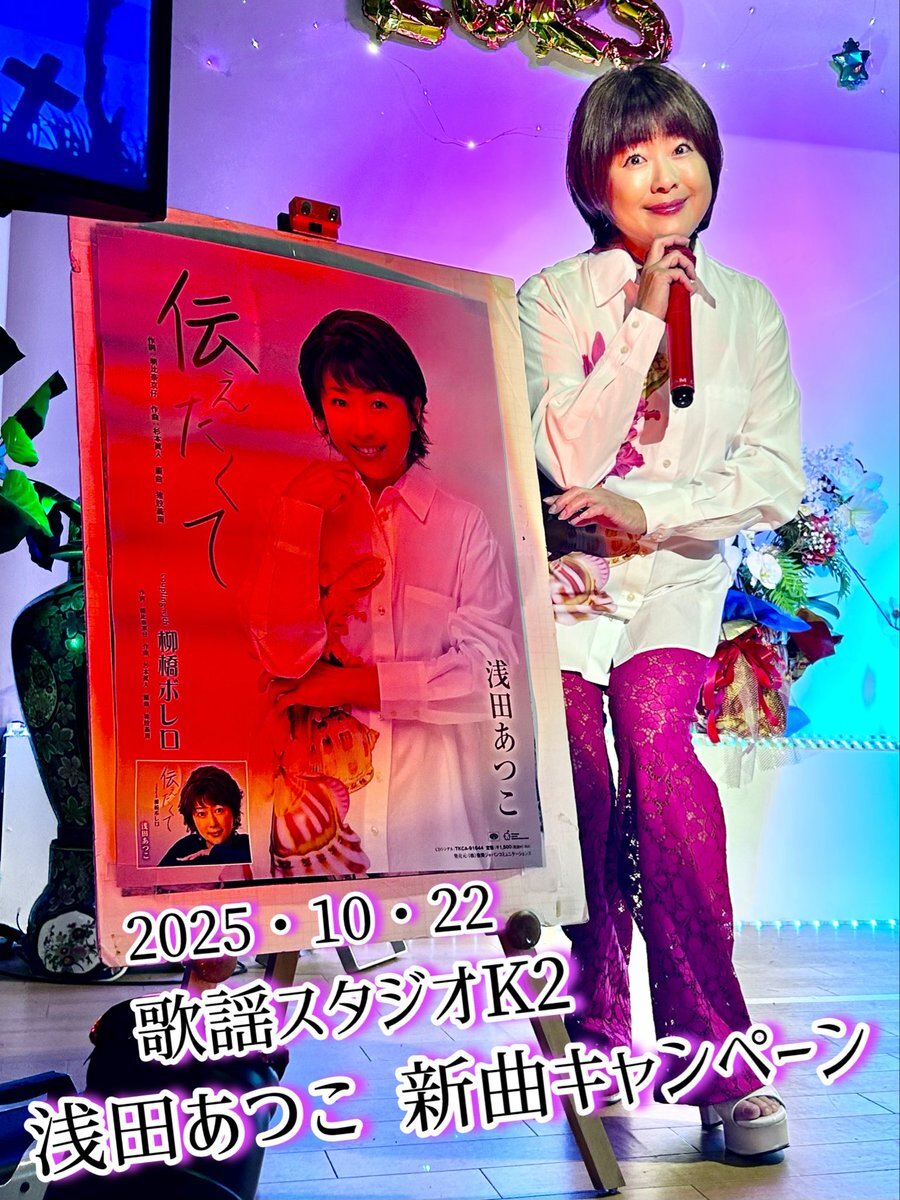 10/22(水) ~#カラオケ広場遊遊~ 本日は定休日🍀 今日は歌謡スタジオK2さんで開催の 《浅田あつこ/新曲(伝えたくて)キャンペーン》に行ってきました➰😄🙌🏼 あっちゃんの素敵な歌声を堪能しまたし🤩 真尾ママ、スタッフの皆様 キャンペーンお疲れさまでした🌷 #浅田あつこ #伝えたくて #柳橋ボレロ pic.x.com/0DbTqjXiwk