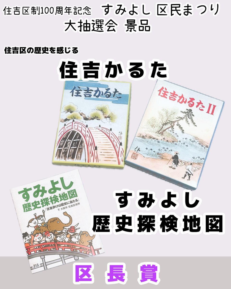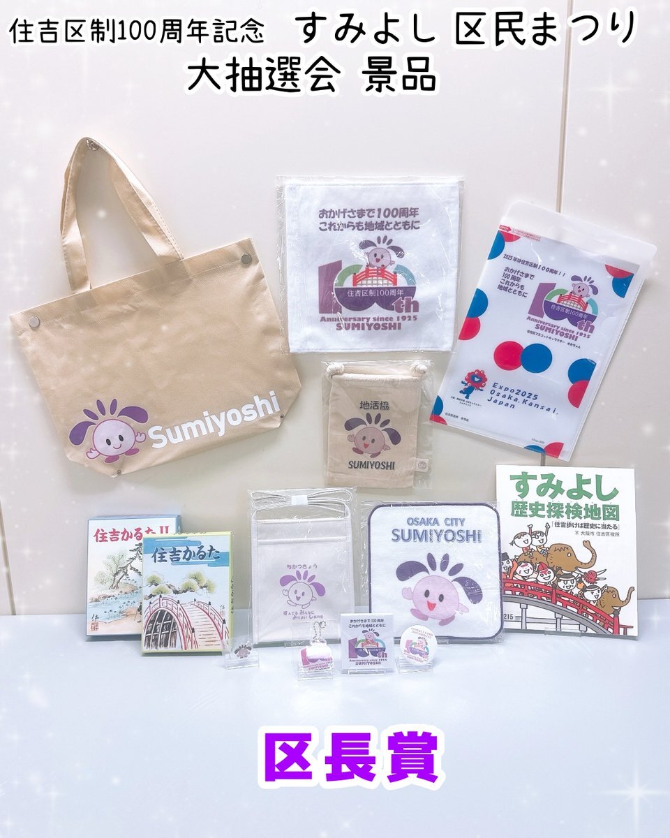 10月25日開催 『住吉区制100周年記念すみよし区民まつり』 大抽選会の景品をご紹介! <区長賞> 住吉区制100周年記念グッズやすみちゃんグッズ、歴史感じるかるたなど盛りだくさん! ぜひご参加ください! 区民まつり詳細 city.osaka.lg.jp/sumiyoshi/page… #住吉区 #すみよし区民まつり #イベント pic.x.com/znahPRccxR