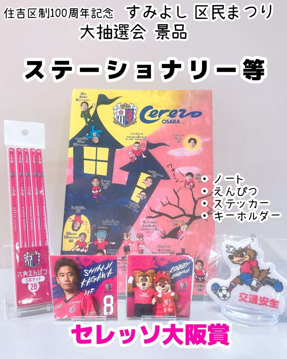 10月25日開催『住吉区制100周年記念すみよし区民まつり』 大抽選会の景品をご紹介! <セレッソ大阪賞> 選手サイン入りフラッグや香川真司選手のサイン色紙など激レアグッズがてんこ盛り! ぜひご参加ください! city.osaka.lg.jp/sumiyoshi/page… #住吉区 #すみよし区民まつり #セレッソ大阪 #サイン pic.x.com/KFjvwOQZTj