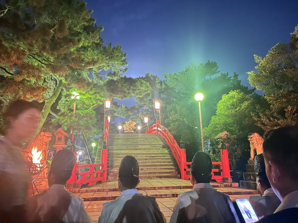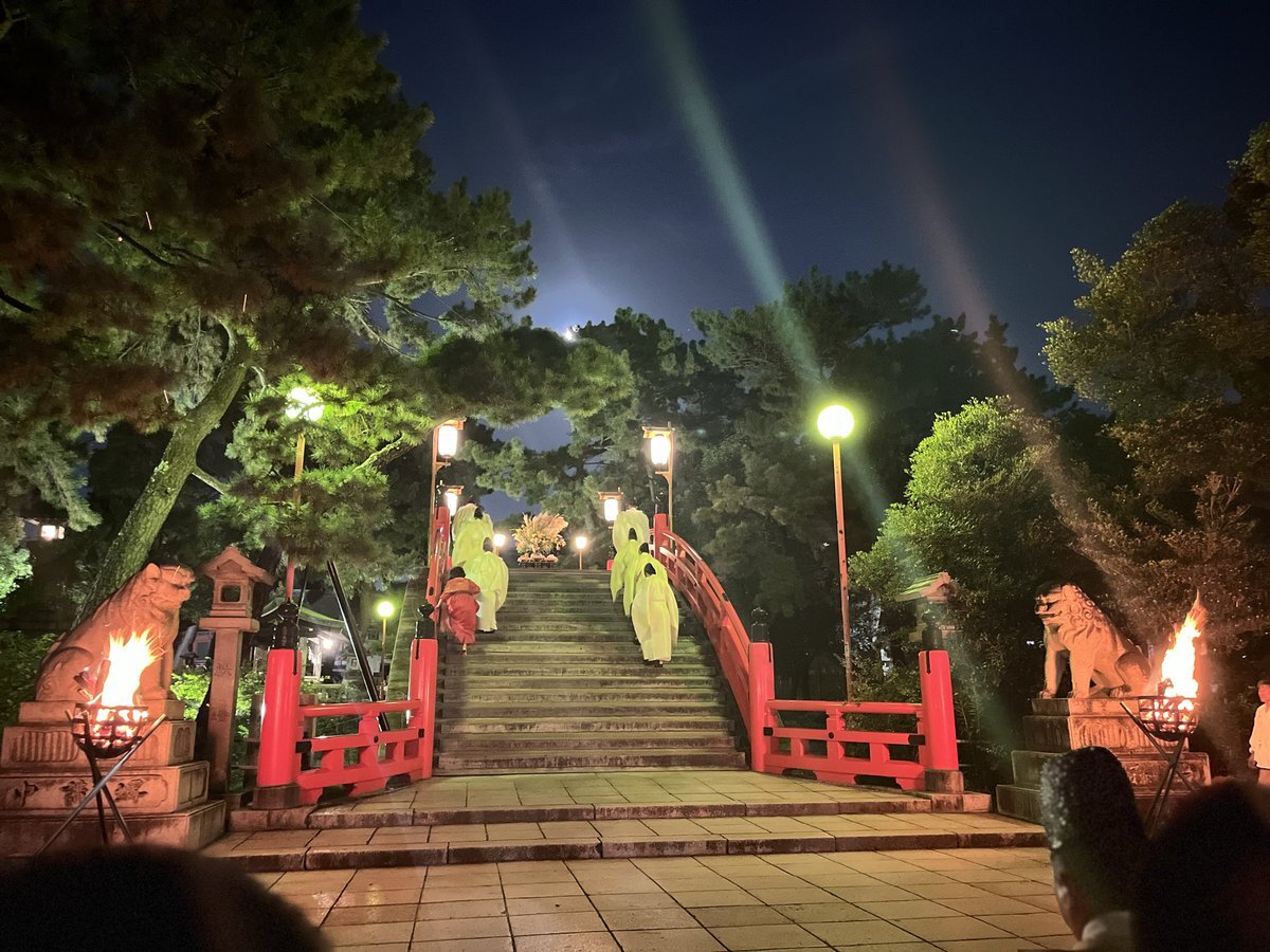 今晩は、住吉大社で観月祭が催されました。 反橋の上に美しい名月が昇るころ、和歌や俳句の披講、舞楽、子どもたちの住吉踊が次々と奉納されました。 名月と反橋が織りなす光景はまさに幻想的で、多くの方が仲秋の夜を楽しんでおられました。 #住吉区 #住吉大社 #観月祭 pic.x.com/vQZNYTclGn