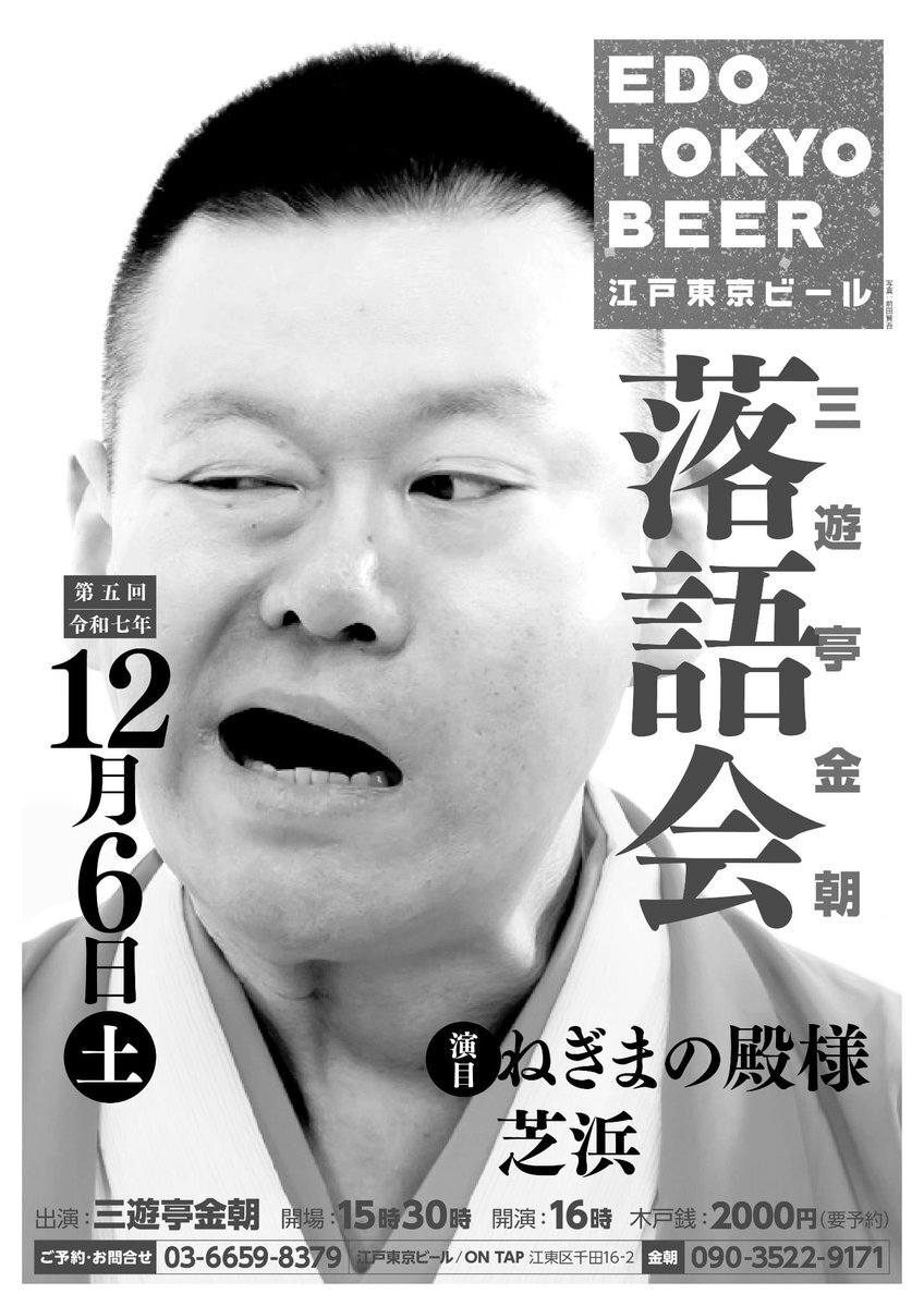 江東区の地ビール醸造所での落語会。 暮れの慌ただしい時期ではございますが、お誘い合わせていただきましての、ご予約とご来場お待ちいたしております。 どうぞよろしくお願い申し上げます。 m(_ _)m #江戸東京ビール #ontap #江東区 #住吉駅 #地ビール #醸造所 #落語会 #三遊亭金朝 pic.x.com/bRCaiYSxdT