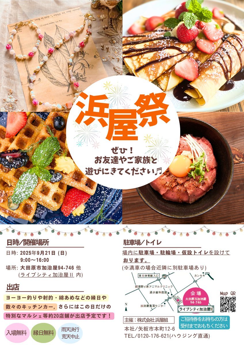 【入場&縁日無料】の浜屋祭を開催します‼ どなたさまもお気軽にお越しくださいね(●'◡'●)🌸 ※雨天決行・荒天中止 ヨーヨー釣りや射的・綿あめなどの縁日や数々のキッチンカー、さらにはこの日だけの特別なマルシェなど約20店舗が出店予定です✨ #浜屋組 #感謝祭 #住宅イベント #マルシェ #縁日 pic.x.com/LGIixxRJKm