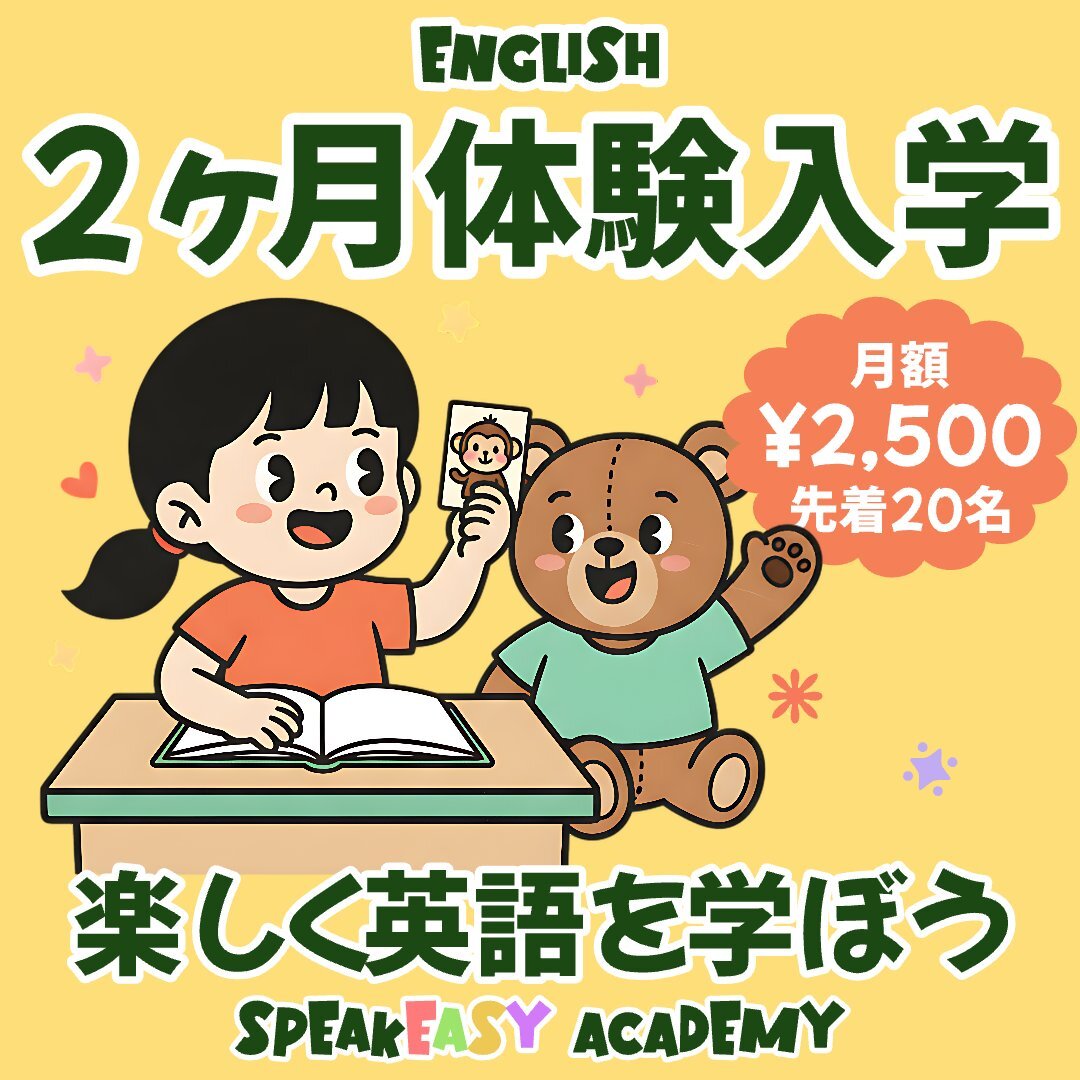 🌟2ヶ月体験入学キャンペーン実施中!🌟 月額わずか2,500円でレッスンを体験できます✨ 先着20名様限定なので、お早めにご予約ください😊 📩 DMまたはウェブサイトから簡単予約OK! #八尾英会話 #英語教室 #体験レッスン受付中 #スピークイージーアカデミー #英語好きな子を育てよう pic.x.com/BpOQOjpz8c
