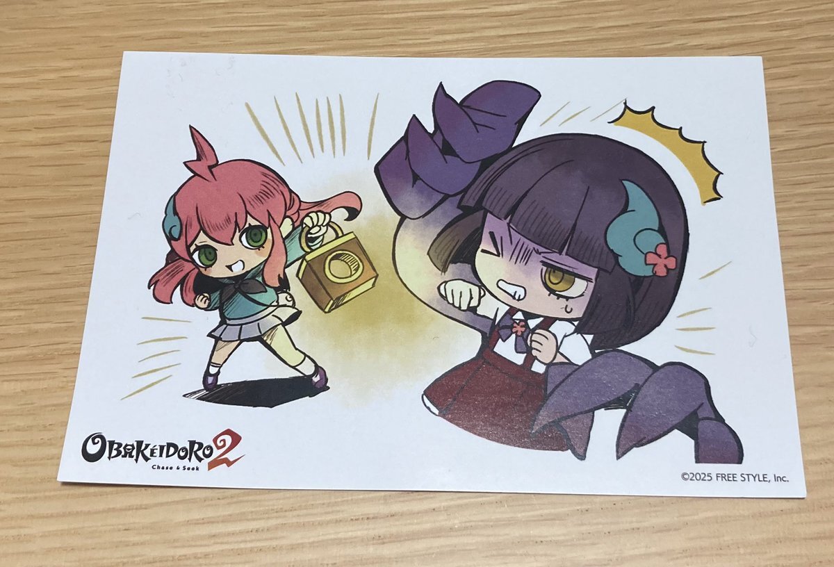 オバケイドロ2体験会!! 今日も行ったぜ!! おまけ #オバケイドロ2 #体験会 今回はオリジナル公式イラストのハガキを貰ったがダブルキャッチ花子さんのイラストもあったので欲しかったがどうやら余り?がなかったようで貰えなくて残念だった😢 けどパッケージ版とかはグッズ貰えるし早く欲しいね! pic.x.com/F6D6QyS089