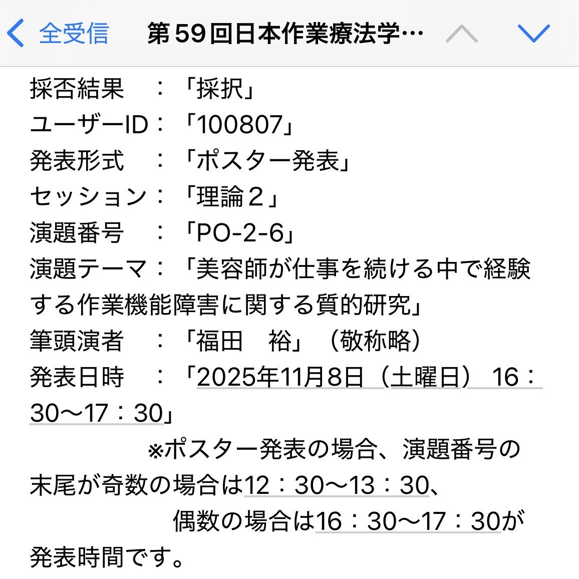 日本作業療法学会 ポスター発表🙋♂️ ⚠️11月8日(土)16時30分〜⚠️ 情報提供をさせていただきました✨ 僕も現地に行きます🔥皆様も是非🙇✨ 福田さん【@mttk_ot 】 宇都宮さん【@yuto_ot0308】 齋藤さん【@saito1085】 #第59回日本作業療法学会 #第59回OT学会 #作業療法 #日本作業療法学会 #作業療法士 pic.x.com/P3e4ph8Hgr x.com/mttk_ot/status…