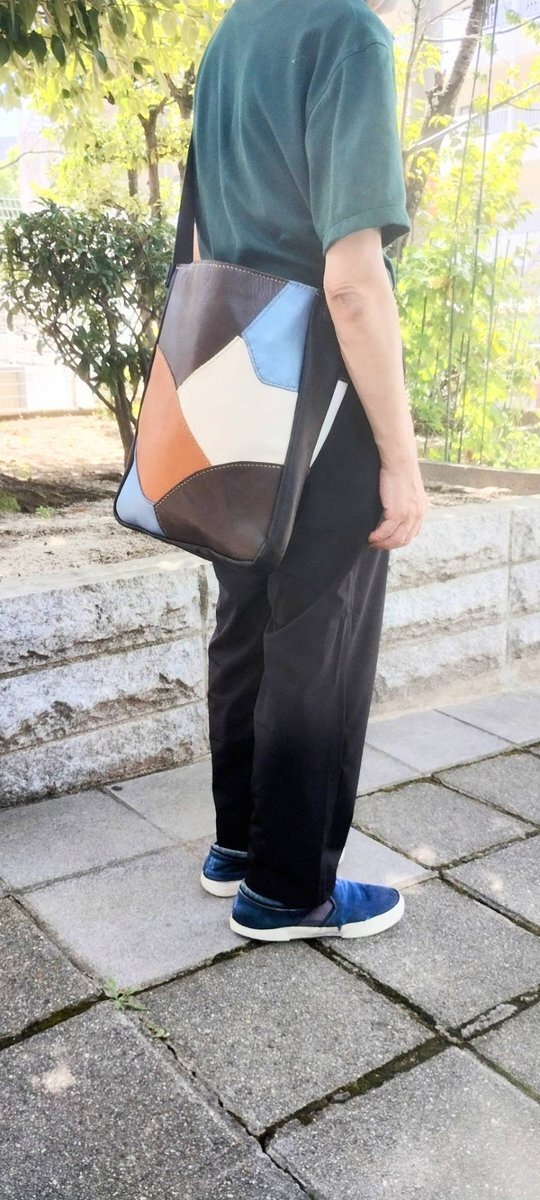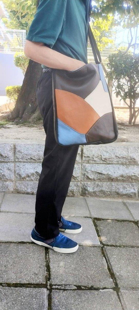 大きめサイズの肩掛けタイプ。容量もたっぷりで使いやすいバッグです。 モデルの利用者さんのお洒落な服装と相まって良い雰囲気です。 #作業療法 #就労支援 #レザークラフト pic.x.com/UBwxYGg8uy