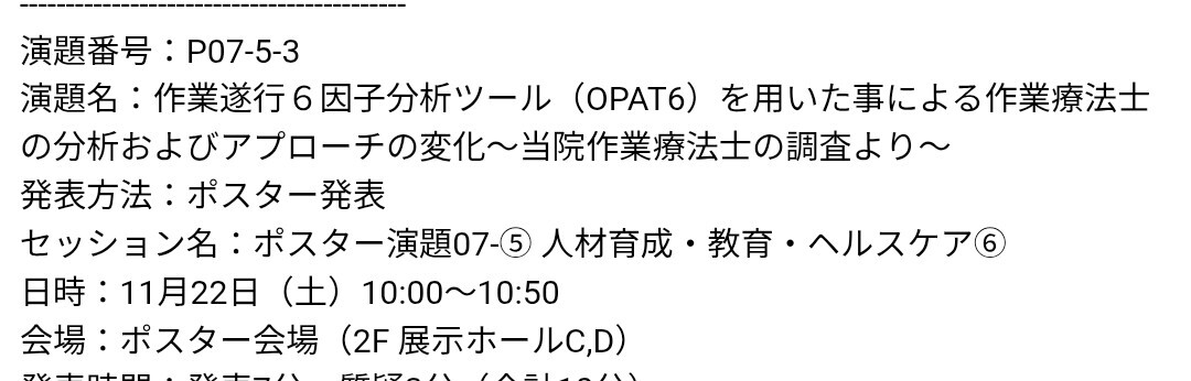 今月21、22日のリハケア合同研究大会で発表します🎤 若手OT中心の部署で、OTの分析ツールを使った変化について調査しました! #リハケア合同研究大会 #作業遂行6因子分析ツール #OPAT6 #作業療法士 #作業療法 #分析ツール pic.x.com/F1CyqEmgk0