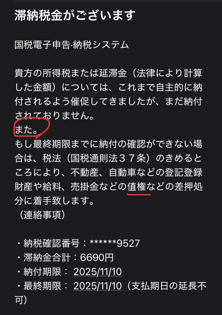 【悲報】ワイ、税金6690円を滞納 また。🤣 值権てことは中国人か 逆に中国人だと思わせるのが狙いか… いずれにせよアホなんやから AIでも使ってマシな文章考えなさい🤗 今なら6690円で添削してあげるよ😎 #詐欺 #詐欺メール #你好 pic.x.com/7q0BdjqEh8