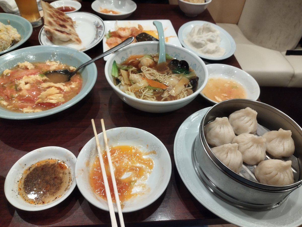 2025/11/15 中国家庭料理 你好 本店 羽付き焼き餃子×2+小籠包×2+水餃子+炒飯大盛+エビチリ+卵トマト炒め+五目そば 蒲田で弟と晩飯。名物の蒲田餃子を食べて貰い為你好へ。美味い!!2人とも昼食べて無かったのですが食べ切れず、持帰の箱に。 #蒲田餃子 #你好 #中国家庭料理你好本店 #餃子 pic.x.com/vER9GoC1T6