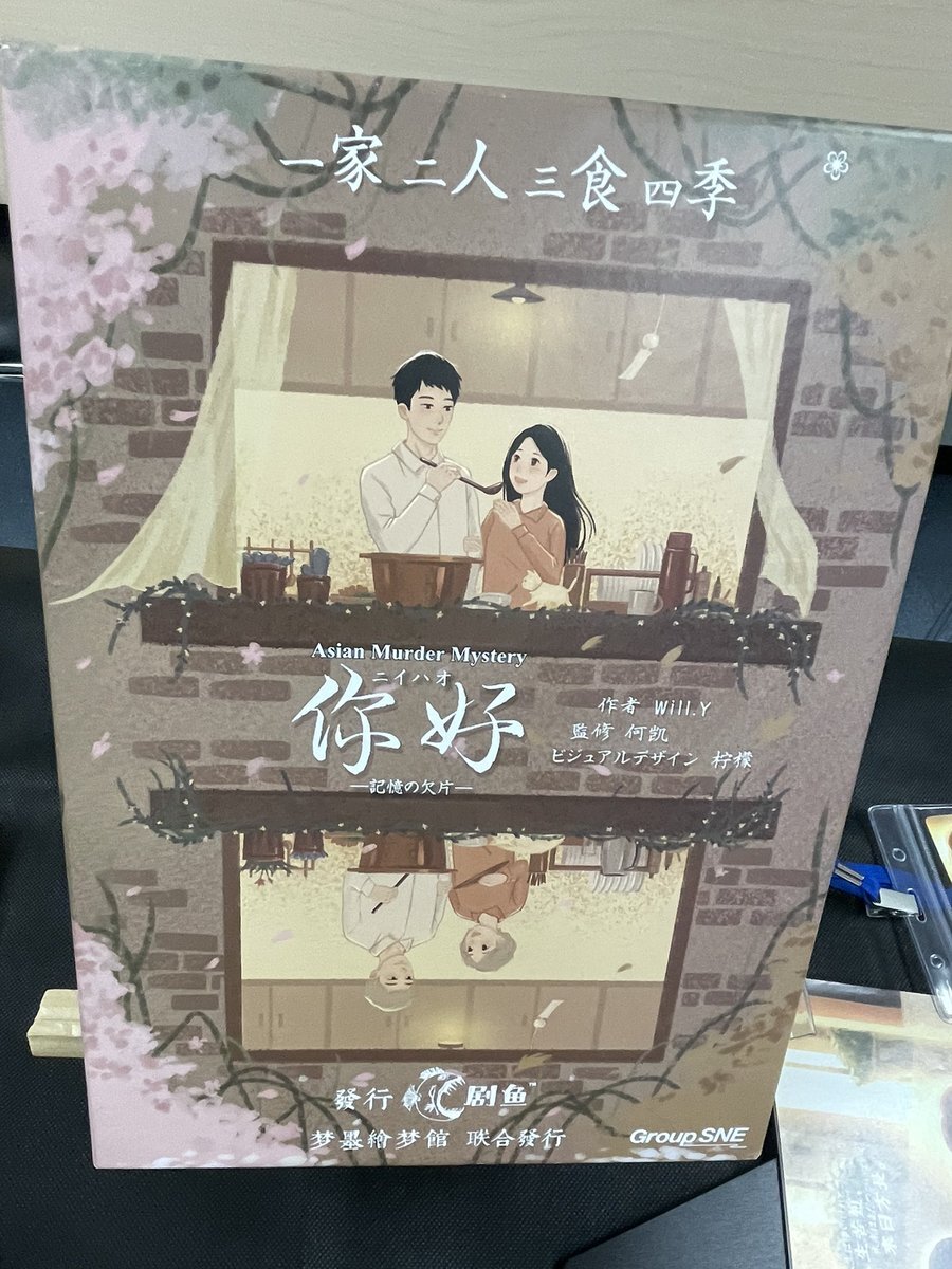 こちらもグループSNEさんからリリースされているAsian Murder Mystery第二弾『你好ー記憶の欠片ー』の公演を。マダミスやストプレはその回ごとに展開が変わるので「えっ、僕が知ってるシナリオと違うwww」となるのもGMの醍醐味と言えますね🤣 #你好 #你好ー記憶の欠片ー pic.x.com/1yR3va6GZE