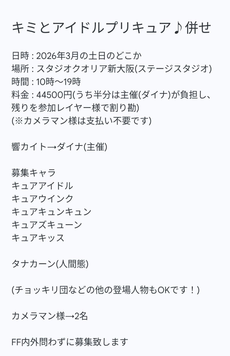 11/9のえざき舎さんのイベントにて4年併せを行いたいと考えております。 そこで以下のレイヤーさんを募集しております。 ご興味ある方いましたらお気軽にお声がけください🙇 #併せメンバー募集 #併せ募集 pic.x.com/Ika3Ra0ioI