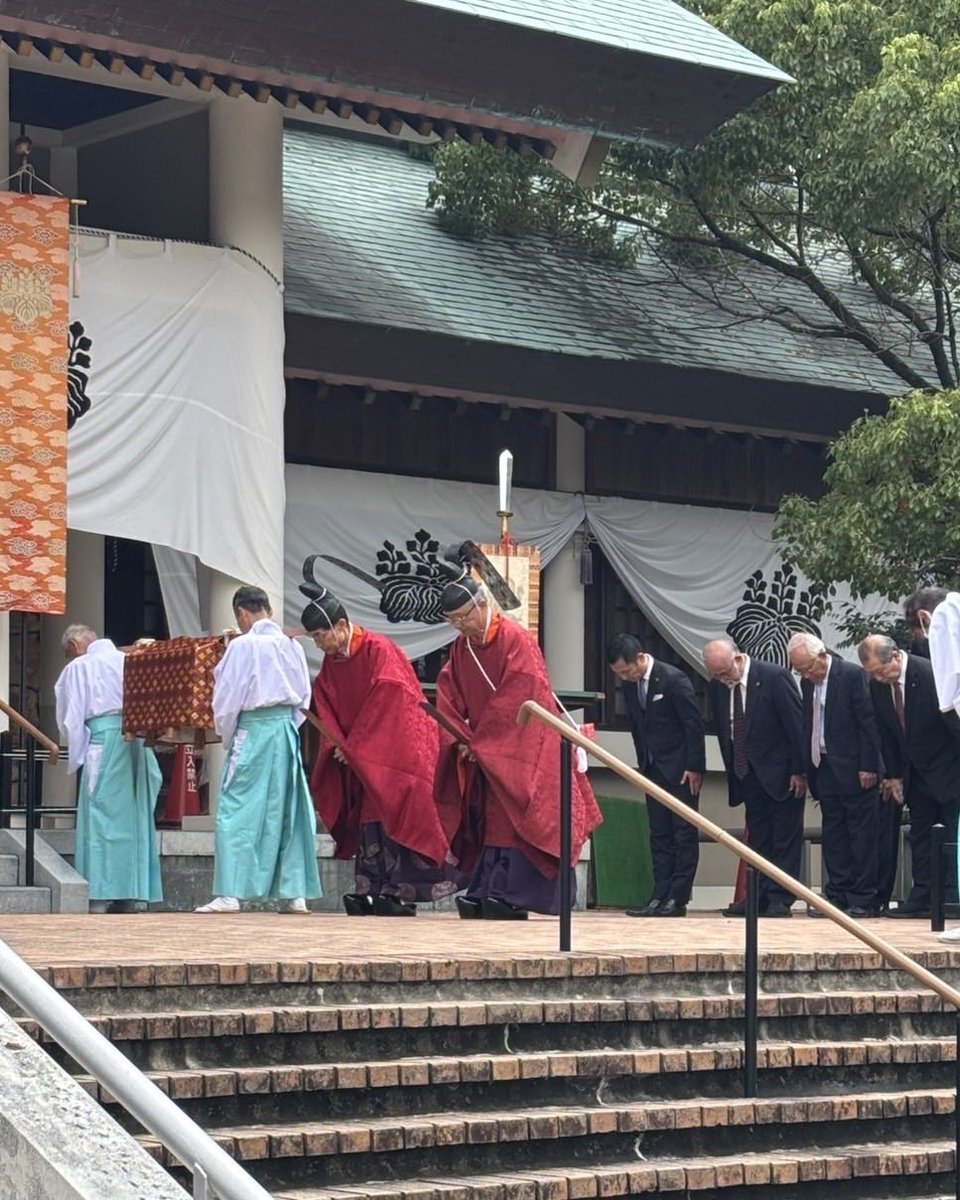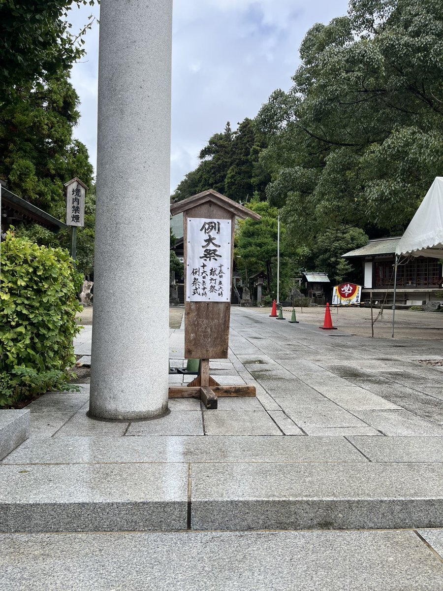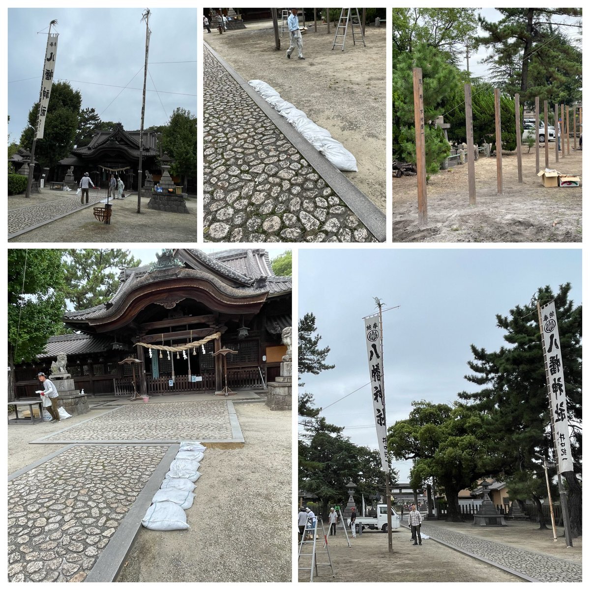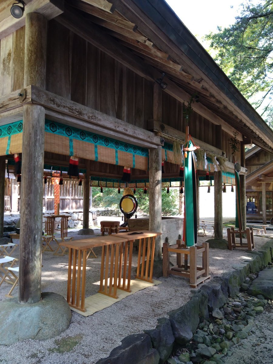 例祭当日 晴天に恵まれ祭場の舗設も整いました。午後3時のお祭りなのでお供えの鮮魚は午後に用意します。 神饌所にはヤモリ殿が待機中でした。 #神社 #松江 #例祭 pic.x.com/0hSyvW5S8q