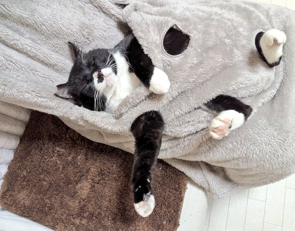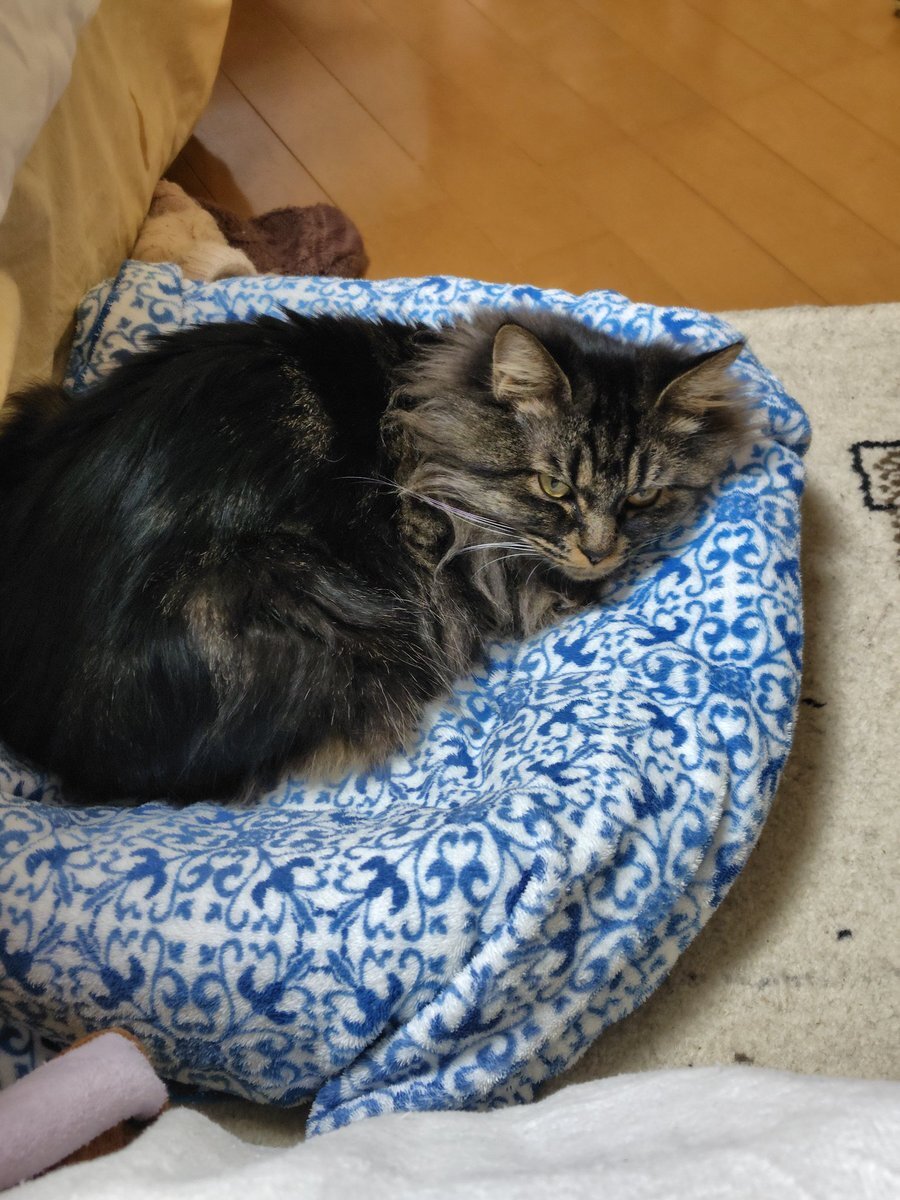 本日のななみん 寝室に設置してた猫ベッド 設置してから2ヶ月近く、場所を変えたり向きを変えたり上にタオルを掛けたり色々と試行錯誤してたけど、やっと使ってくれた 動物愛護センター時代に使ってたタオルが効いたのかな #猫バカ #保護猫と暮らす #保護猫を家族に #神奈川県動物愛護センター pic.x.com/iZEEQmndHj