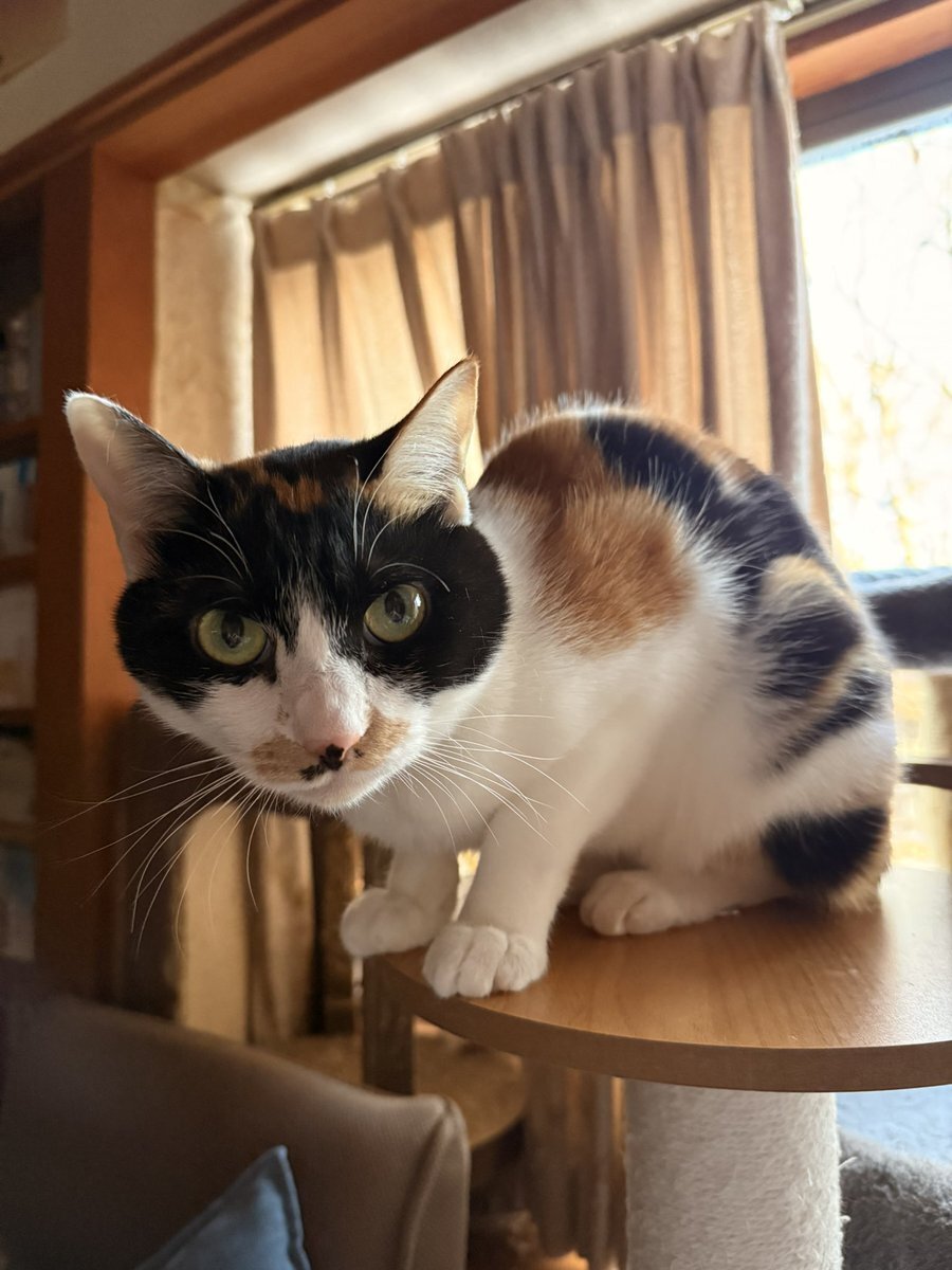 おはようちぃこ🌞今朝は激寒だからエアコンの暖か空気が一番当たる場所にいるね かしこい子😸 #猫 #猫好きさんと繋がりたい #保護猫と暮らす #猫のいる幸せ #猫のいる生活 #三毛猫 pic.x.com/V8LiUDzaQZ