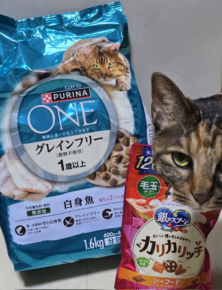 ママいっぱいお買い物してきた⸜(*´꒳`*)⸝ シマ子がチェックに起きてきました。 ピュリナワンがいつもより安かったからいつもと違うやつ買ってみたよ〜ฅ(´꒳ `ฅ)ꪆ #猫がいる生活 #猫のいる幸せ #保護猫と暮らす pic.x.com/VR2QrGhxSh