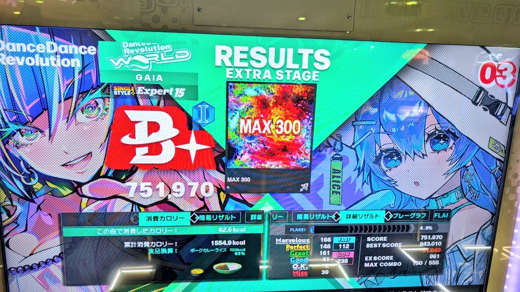 #DDR #ダンレボ #地力上げ #修行 #黒埼ちとせ #白雪千夜 #11時10分にいいちとせ #11時24分にいい千夜 Gaia「ハァハァ…、これにて完全燃焼だ。Lv13で新規のフレアⅨ。1500辺りでMAX300激クリア。その後にも、約1100㌔カロリー分動いて…総計2665㌔カロリーだ!!」 pic.x.com/OYERGUfqwM