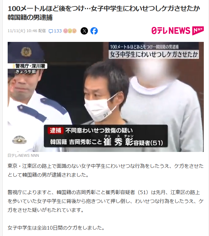 小学生装い児童ポルノ販売疑い 児童養護施設職員の男逮捕 韓国籍の児童養護施設職員、辺純人容疑者(31)を逮捕。 日テレNEWSでは「韓国籍の原純人こと辺純人(ピョン・スニン)容疑者」と本名と通名を報じていました。 もう通名制度は廃止にするべきだと思います。 news.livedoor.com/article/detail…