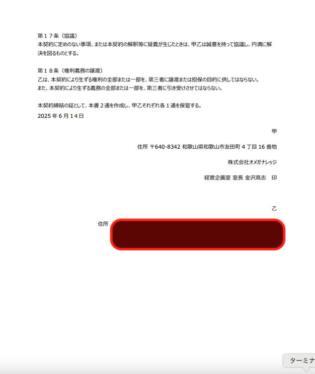下記のような契約書であったがこの経営企画室 室長 金沢高志 この部署も金沢高志偽造である可能性が高い #偽名 #契約書 #フリーランス新法違反 #オメガナレッジ #パワーナレッジPOS pic.x.com/4066I0axdJ