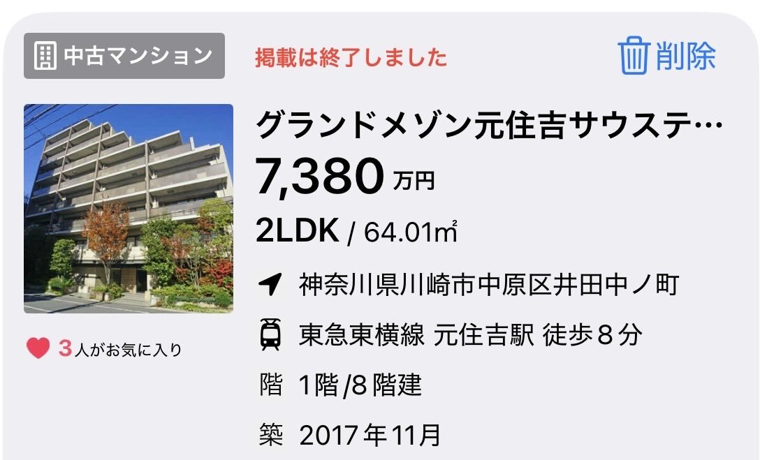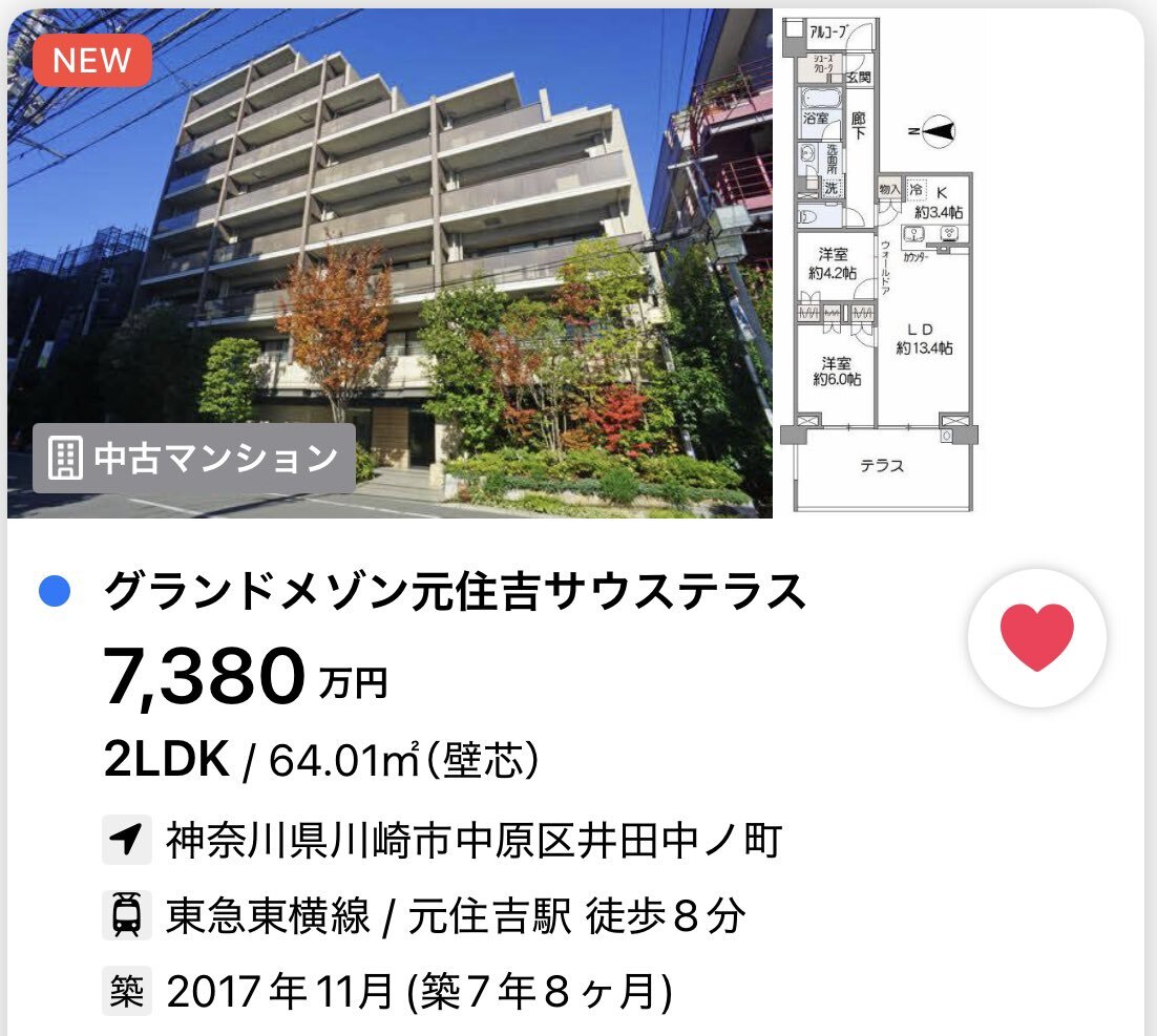 グランドメゾン元住吉サウステラス 7,380万円 1階西向き64.01㎡ 2017年11月築 元住吉駅徒歩8分 掲載終了を確認しました! グラメ元住吉もなんだかんだで安定稼働してますね😁 #元住吉 #グランドメゾン pic.x.com/eqapKMwZZK x.com/fermatss/statu…