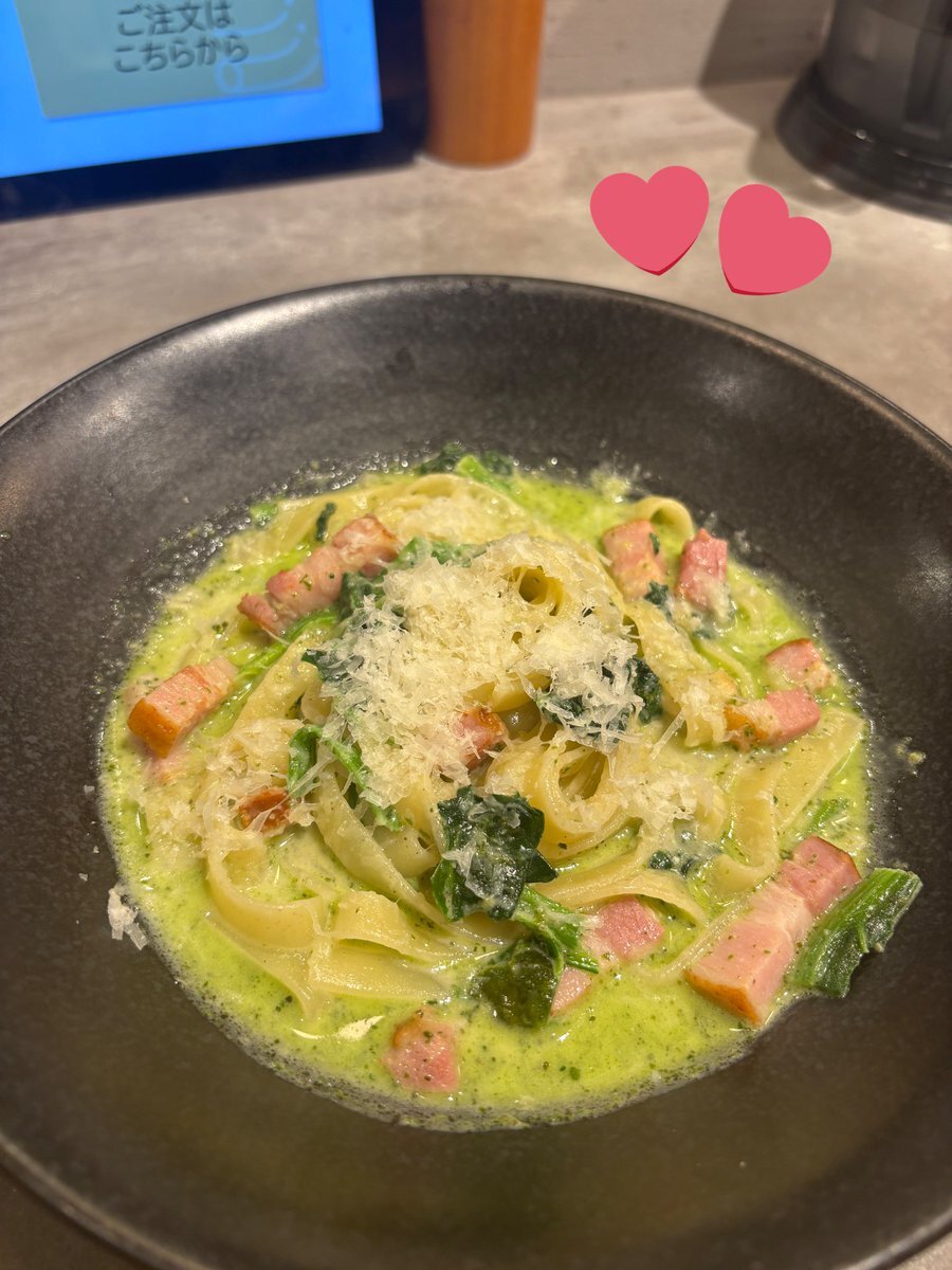 今日は『ベーコンとほうれん草のバジルソース』をいただきます😋 濃厚なバジルクリームとベーコンの旨みがたまらない🥹🍀 麦のトリコのベーコンはかなり良いものを使っているので本当に美味しいんです! ぜひ食べてみてください✨ #元住吉 #バジルクリーム #クリームパスタ #ベーコン pic.x.com/pkiSmkTsYK