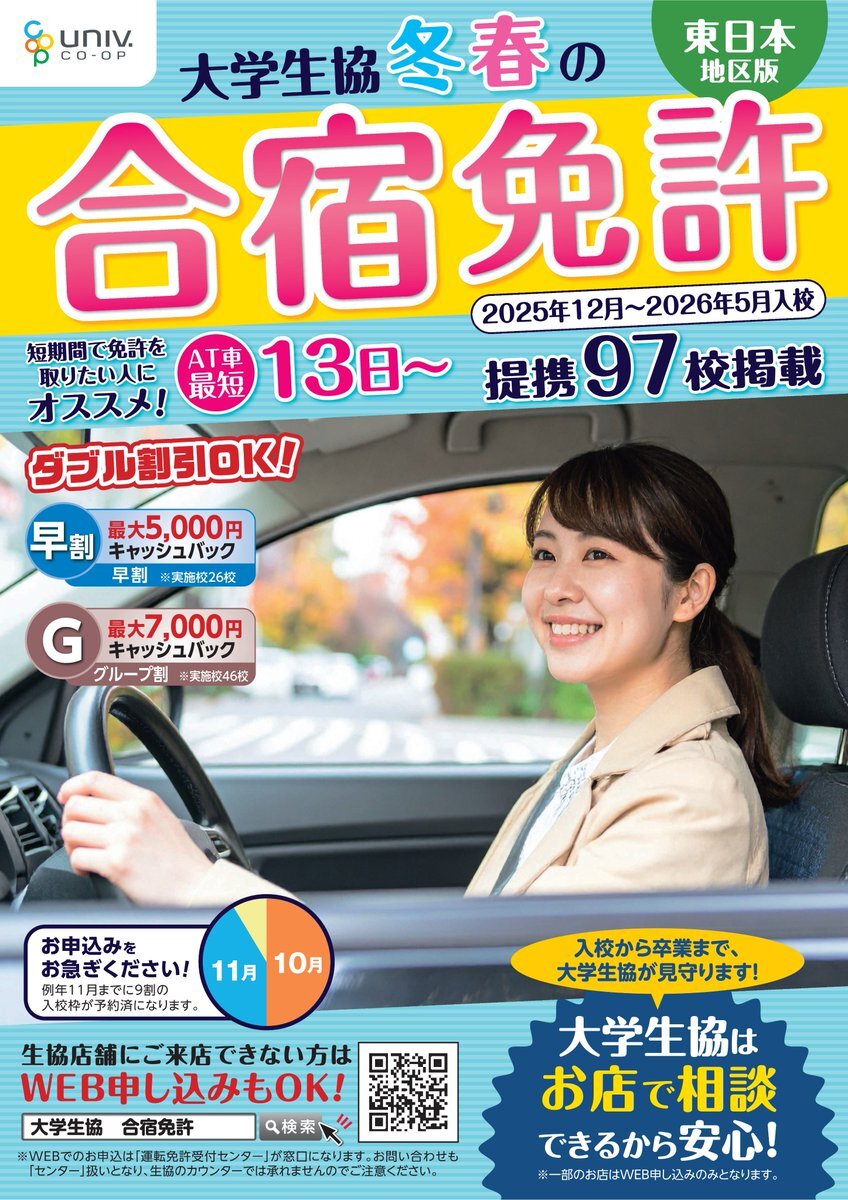 【春休み・合宿免許】 昨日予約が始まりました春休みの合宿免許★ 大学生協全体で約900名も予約が入ってます!! 希望日、希望の教習所が埋まってしまうので予約の方は早めに相談を~ 17号館1階トラベルセンターで受付しています!! #免許合宿 #教習所 pic.x.com/9HOVI7P4kF