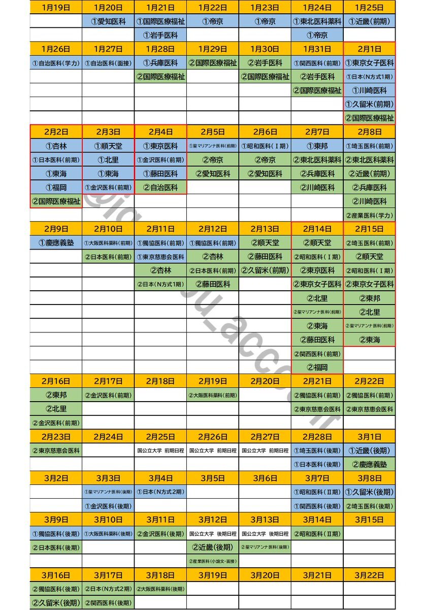 【私立医学部入試日程最新版】 未発表の大学(3校)も全てHP上で公表されましたので、正式にリリースします。 今回は後期試験も追加しました。 生徒指導等でご参考にしていただければと思います。生徒の皆さん、今年は戦略と分析が鍵を握ります。 #医学部 #医学科 #大学入試 #入試日程 pic.x.com/Z53MmSDRGQ