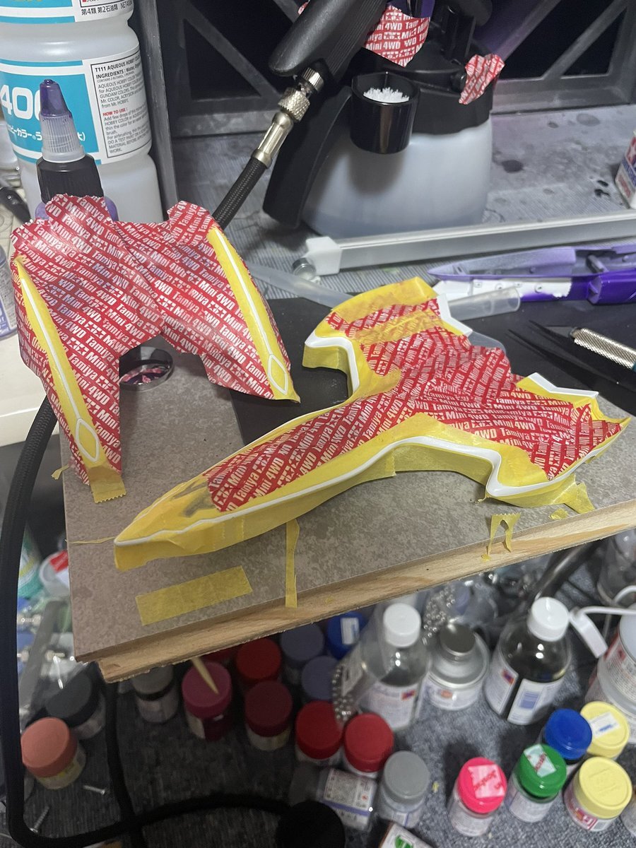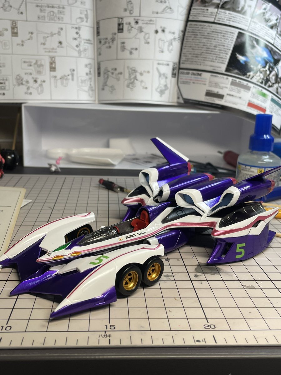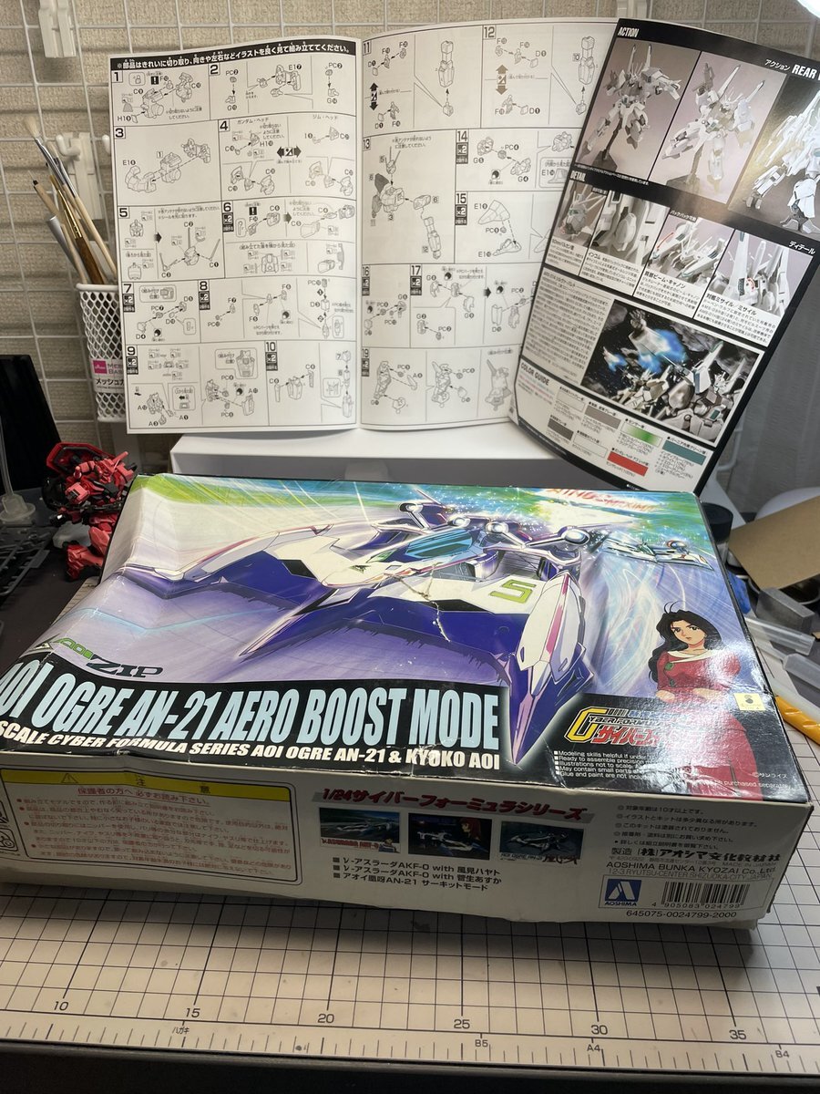 26年前の黄ばんでしまったプラモを全塗装で製作 新世紀GPXサイバーフォーミュラSIN AOI OGRE AN-21 エアロブーストモード 流石は青島文化教材 塗り分け要求がエグすぎる 全てエアブラシで塗装 #サイバーフォーミュラ #スケールモデル #カープラモ #エアブラシ #全塗装 pic.x.com/UospW3hq5N