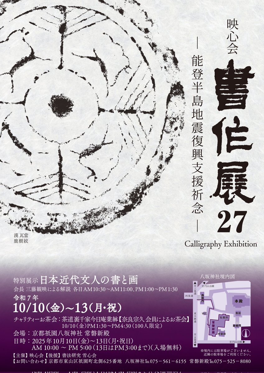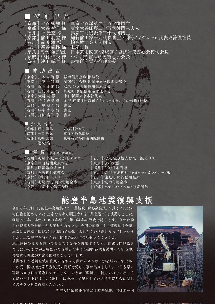 本日2日目、大変盛況です。お近くの方は是非お越しください。なお、指定寄附金の問合せは会場設置チラシのメールでも行っております。お気軽にお問い合わせください。 #映心会 #書作展 #八坂神社 #願正寺 #指定寄附金 #能登半島地震 pic.x.com/EzL4soTaPT