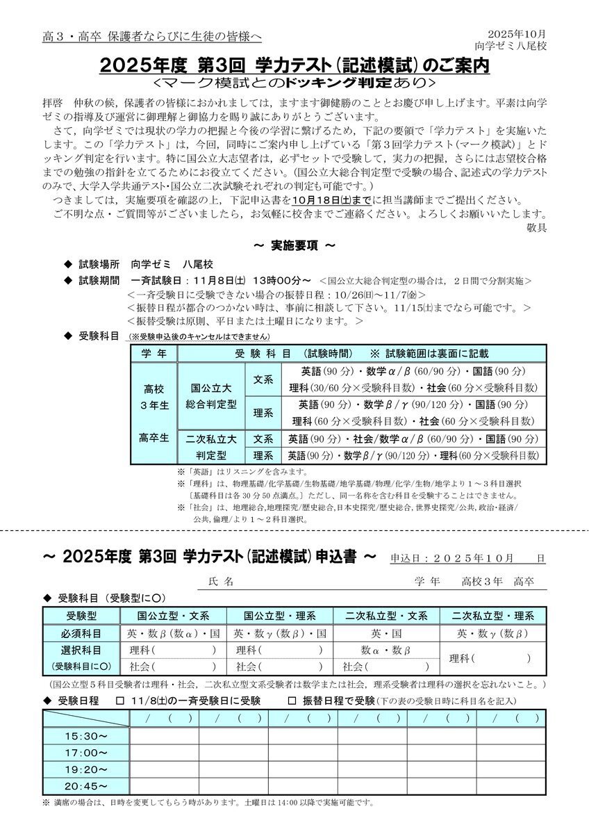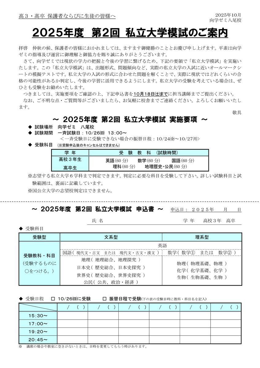 #高校生・ #高卒生 #記述模試 #マーク模試 #私大模試 申込受付中 締切10/18㈯ 詳細 linevoom.line.me/post/117603388… kougakuzemi-yao-2013.com/?p=2735 instagram.com/kougakusemi.ya… へ #八尾市 #塾 #八尾市塾 #八尾市 #模試 #共通テスト #大学入学共通テスト #大学入試 #八尾高校 #八尾翠翔高校 #金光八尾 #塾探し