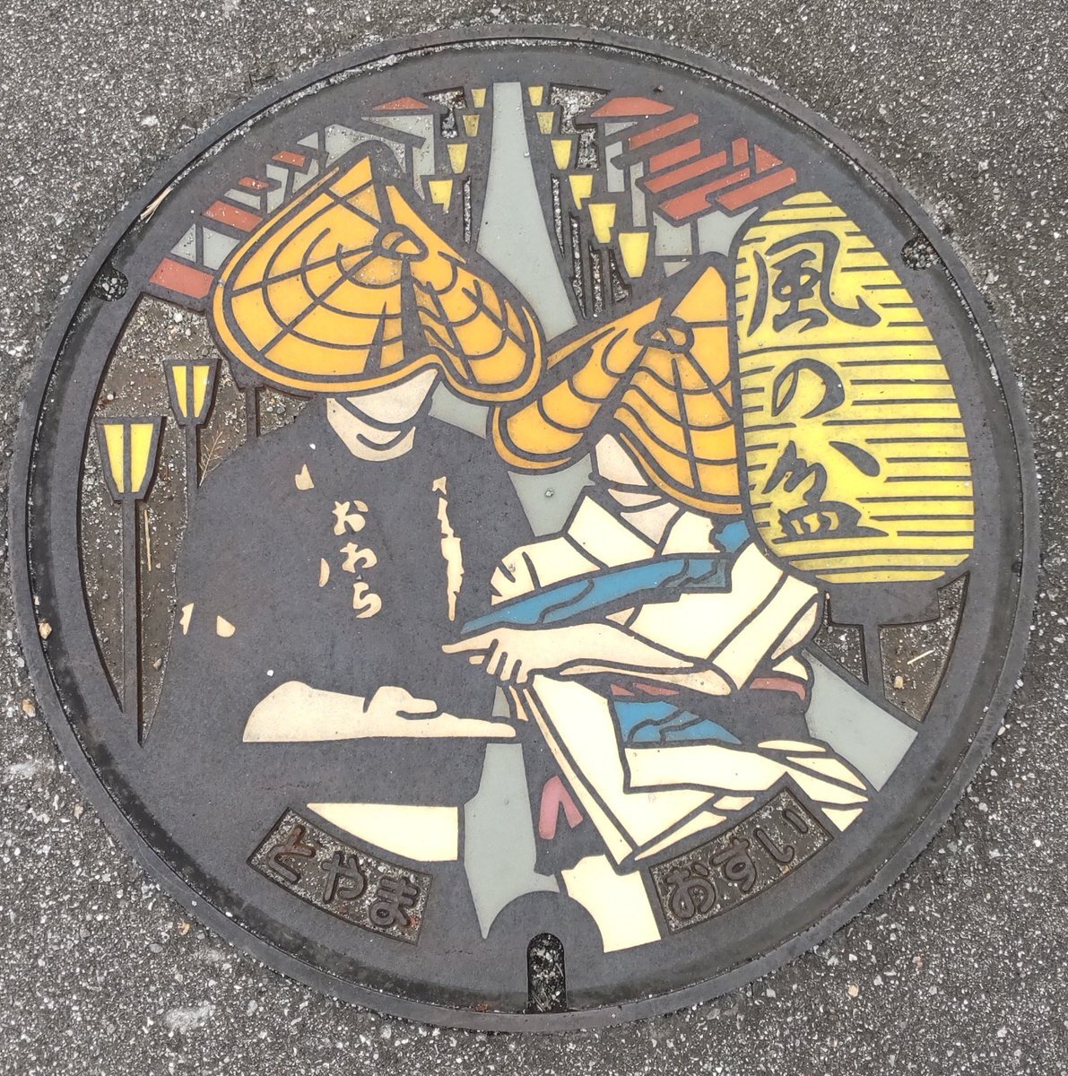富山市で見つけたマンホール😆 電車の時間がギリギリで急いでいたら、段差に気づかず転んで膝をケガした😵‍💫 で、ズボンの膝が破れた😱 #富山県 #富山市 #八尾 #おわら風の盆 #おわら風 #マンホール #マンホールの蓋 #マンホールカード pic.x.com/vJLtLJzVfr