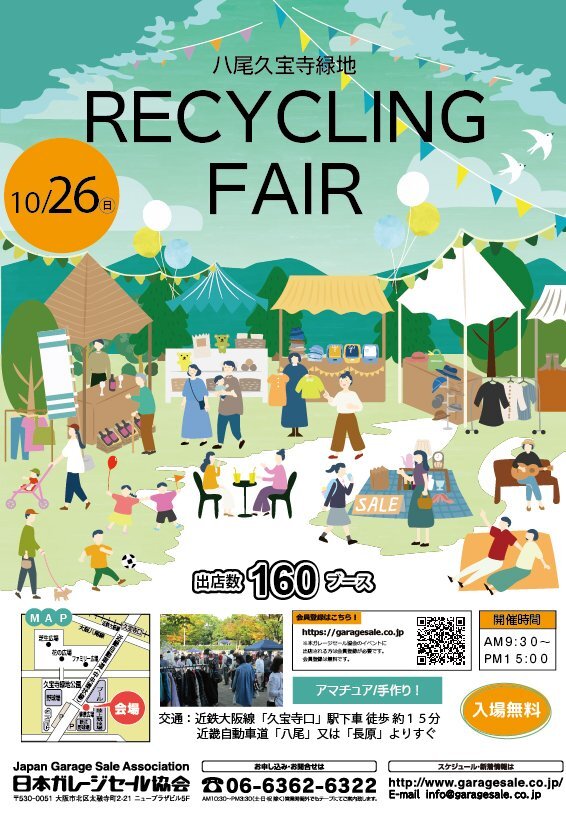 八尾久宝寺緑地リサイクルフェア 🔥開催日/10月26日㊐ 📍場所/八尾久宝寺緑地公園(修景広場) ⏰時間/AM9:30~PM15:00 🚃交通/近鉄大阪線「久宝寺口」駅下車 徒歩約15分  🚗近畿自動車道「八尾」又は「長原」よりスグ 入場無料✨160ブース予定🎶 HP▶︎garagesale.co.jp #八尾 #久宝寺 pic.x.com/te1uLMpDyz
