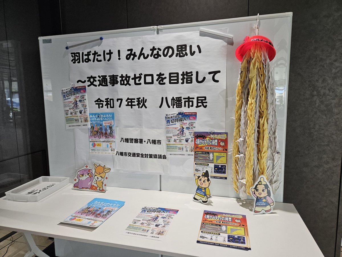 交通安全展示 秋の交通安全週間を終え市役所1Fエントランスで展示されています。 2026/4/1~青切符が導入されます。 自転車のヘルメット着用(努力義務)と合わせて交通安全に心掛けましょう! #公明党 #八幡市  #清水章好 #交通安全 pic.x.com/gtTVXqKxlX
