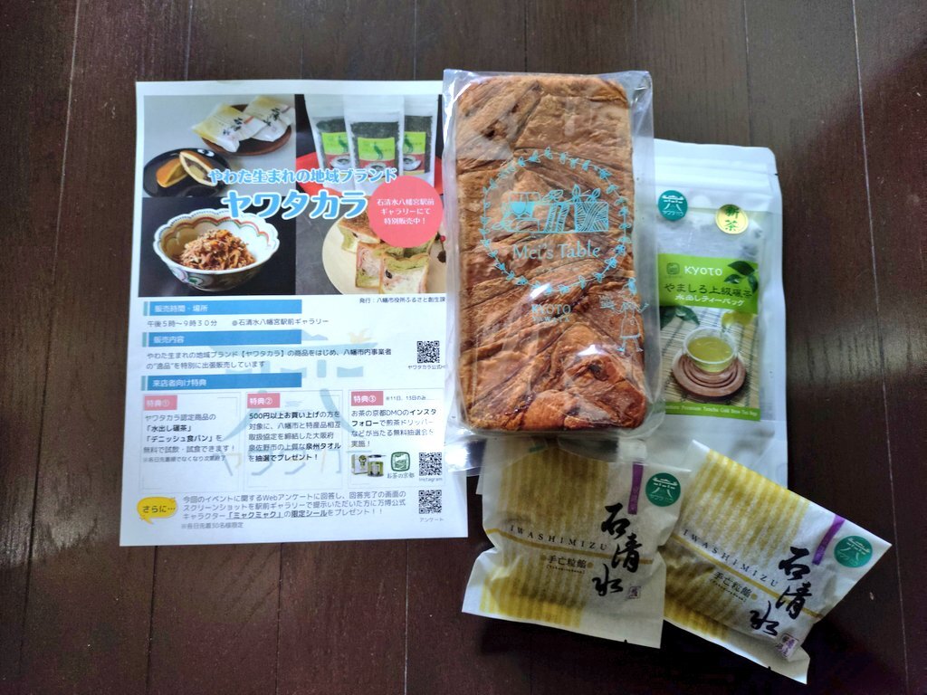 八幡生まれの地域ブランド「ヤワタカラ」の一部を特別販売されていましたので、購入させていただきました😊 本日(13日)17時〜21時30分まで 石清水八幡宮駅前ギャラリーにて販売 「水出してん茶」「デニッシュ食パン」が無料で試飲・試食できます🥃 ※ 先着順でなくなり次第終了 #八幡市 #ヤワタカラ pic.x.com/t5m0FxRvfW