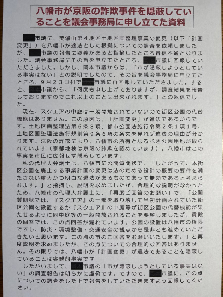 #地方自治体の不祥事続発 八幡市は、市の公園用地を京阪が詐取したことを、京都地検が認めているのに市民に知らせず、調査したO市議は虚偽の調査報告をし、市は組織ぐるみで詐欺事件を隠蔽している。 #八幡市 が説明責任を果たさず、このまま逃げおおせることができるのなら日本の未来は暗い。 pic.x.com/HsyjAopf2m