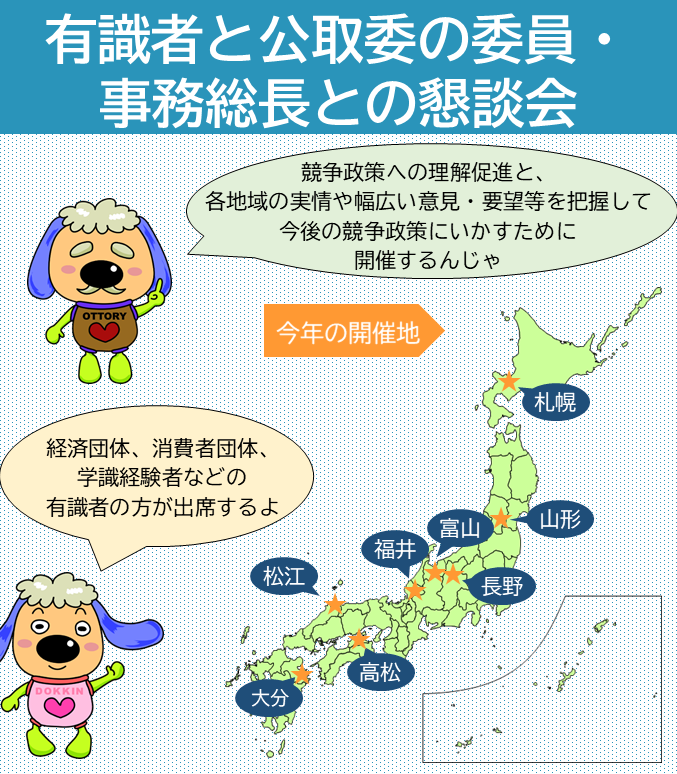 【有識者との懇談会を開催】 今後の競争政策に役立てるため全国主要都市で毎年開催している、有識者と公正取引委員会の委員又は事務総長との懇談会を、11月18日から全国8都市で開催します。 jftc.go.jp/houdou/pressre… #公正取引委員会 #競争政策 pic.x.com/ZsHZ2zW7pp