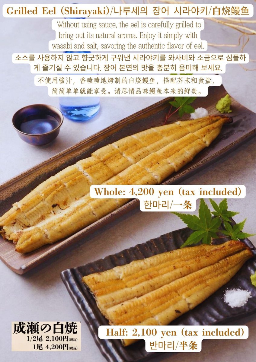 ✨ 新メニュー登場 / New Menu / 新品登场 / 신메뉴 출시 ✨ うなぎ本来の旨味を味わえる「白焼」が新登場。香ばしく焼き上げた一品を、塩やわさびで上品にお楽しみください😌 #白焼 #Shirayaki #鰻の成瀬六本木店 #うなぎ #Unagi #六本木グルメ pic.x.com/xiSQRf7v8h