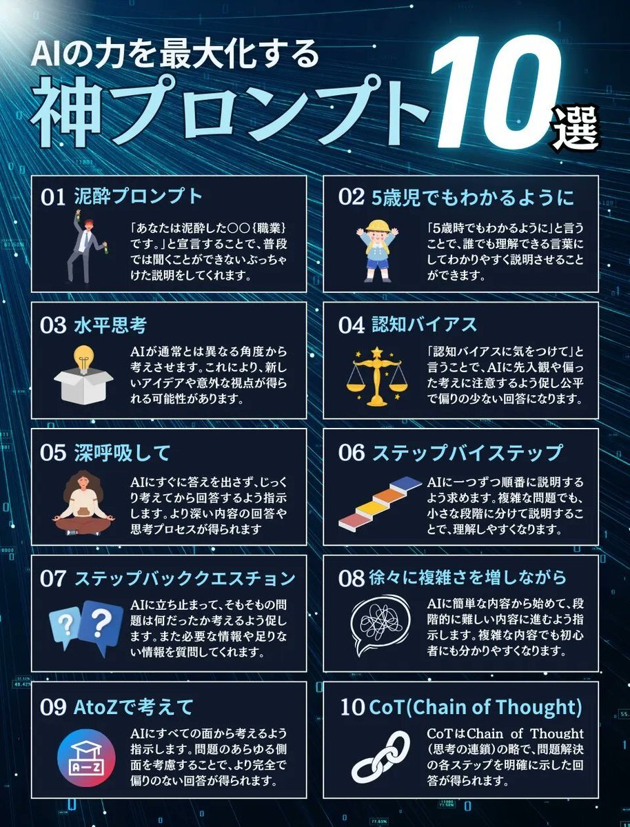 【ChatGPTプロンプト】回答質向上10選|水平思考・CoT活用|via @nagi__blog 11/11 #メモ #共有 #生成AI x.com/nagi__blog/sta…