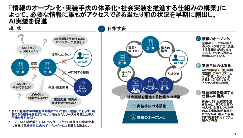 大手コンサルマッキンゼーが公開している資料の学びが多すぎたので共有。 「AI導入の戦略的意義(リソース補完・競争力強化)」「優先的に導入すべき業種・工程」「AI導入の経済的効果」といった、AI活用戦略の基礎を学べるので、DX推進の参考になる。 こちら👉 meti.go.jp/meti_lib/repor…