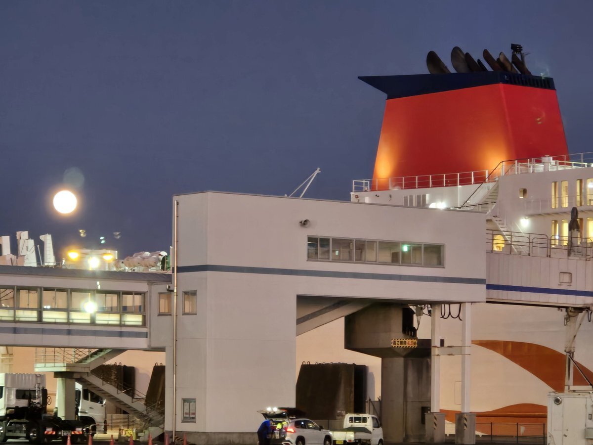 大洗港19時45分出港、商船三井さんふらわあ「さんふらわあさっぽろ」に乗船しました。 きょうは旧日本沿海フェリー大洗就航40周年記念割で運賃40%割引でプレミアムのシングル利用を確保しました。 19時35分に離岸しました。 #内航船の日 pic.x.com/knXTvbZk9z