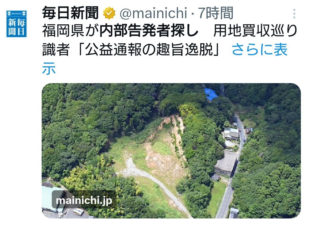 福岡県が内部告発者探し 用地買収巡り 識者「公益通報の趣旨逸脱」(毎日新聞) #内部告発 #公益通報者保護法違反 pic.x.com/LhyJJOTfjy x.com/mainichi/statu…