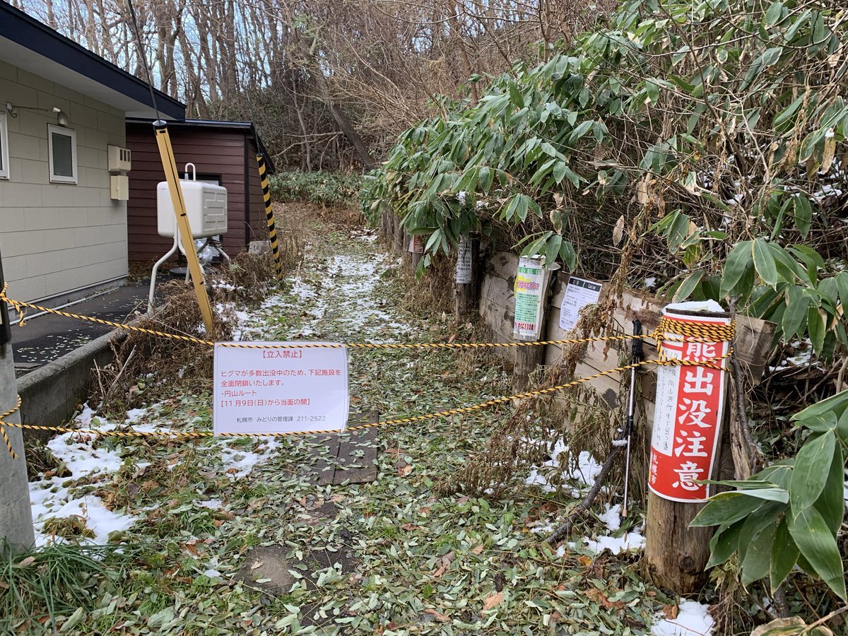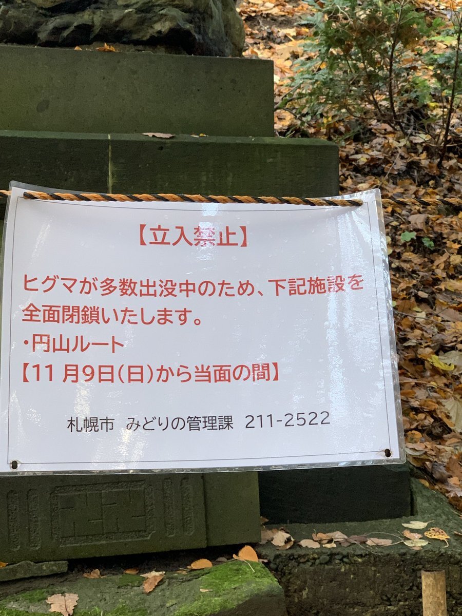 今日の円山 11月10日 昨日、円山動物園内で熊の足跡が発見されたことで、円山も入山規制されました。 大師堂は開いてましたが、坂下野球場から各所規制されており、木道の各入り口もゲートされています。 大師堂横の円山登り口にはローピングがあり、登れません。 #札幌 #円山 pic.x.com/Vj0MBc1ZWf