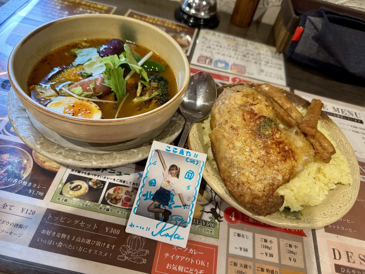 札幌・円山の美味しいスープカレー屋さんマタレーに来ています♡ 私はビッグチキンカレーで相方は鴨の自家製低温ローストカレーです♡ サラサラスープがおいしい😋 #スープカレー #マタレー #円山 pic.x.com/kgPq23mzY4
