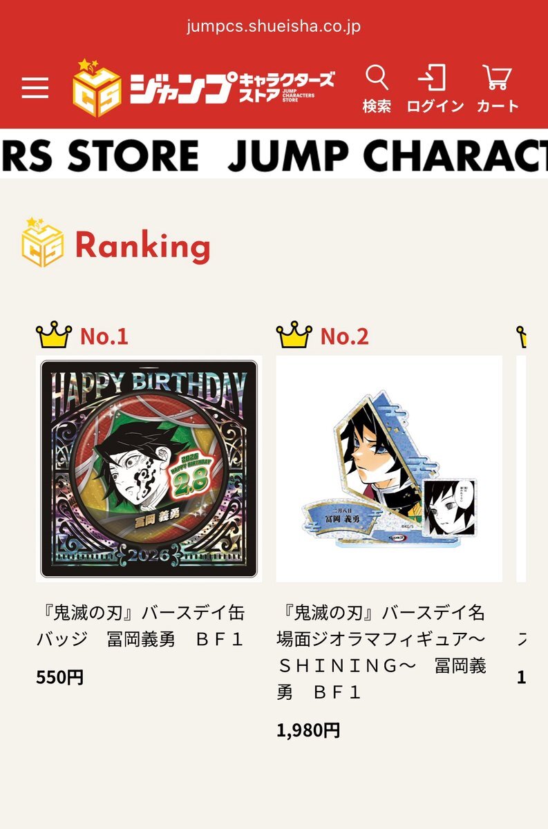 ランキング、義勇が一位だった 流石!! 三位から六位までも鬼滅のグッズだった これは在庫品じゃないし受注だし慌てずゆっくり買えて本当最高 ランダムじゃないのもいい #冨岡義勇 #鬼滅の刃 pic.x.com/REWu8x7LFh x.com/Jumpcs_Shueish…