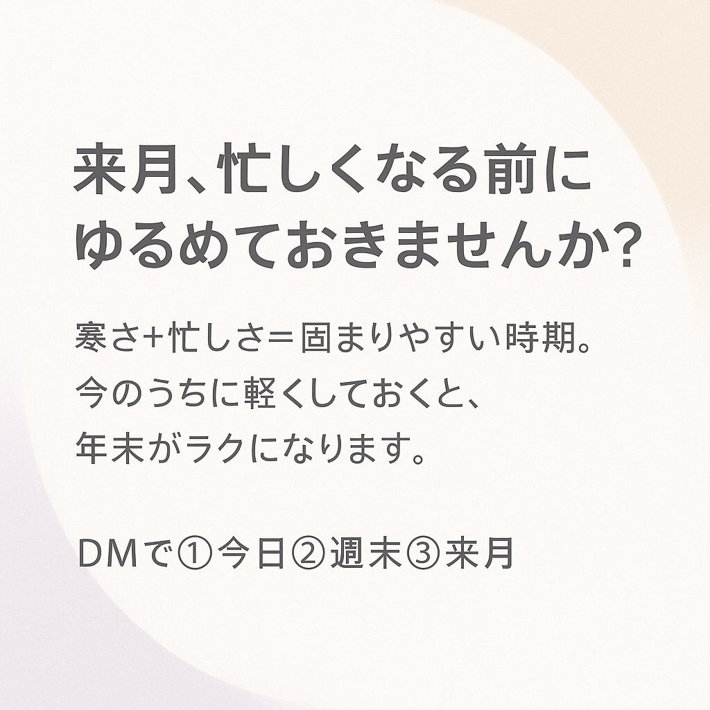 「体の安心」って、どう作ればいいの? がんばりグセのある人ほど、休むのが苦手。 でもね、実は“感じる力”を取り戻すだけで、 神経は勝手に落ち着いていくんです。 なでて、支えて、感じる—— これがさとう式リンパケア の真髄 冬の“ #冷え ・ #こり ・ #不安 ”にも効く理由 ameblo.jp/ih-session/ent…