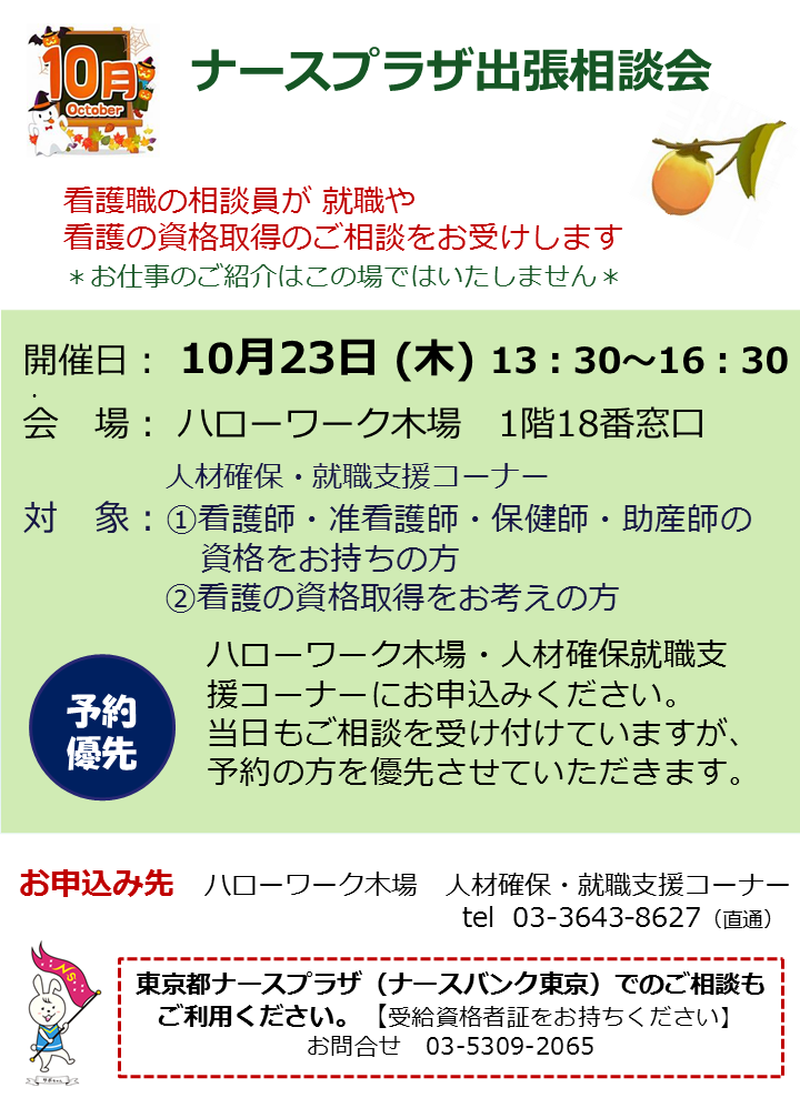 🗓️10月23日(木) 📢ナースプラザ出張相談会🏥 #相談会 #看護師 #准看護師 #保健師 #助産師 ナースプラザの相談員が看護職への就職や資格取得のご相談をお受けします💫 jsite.mhlw.go.jp/tokyo-hellowor… pic.x.com/mUWb0ru6aW